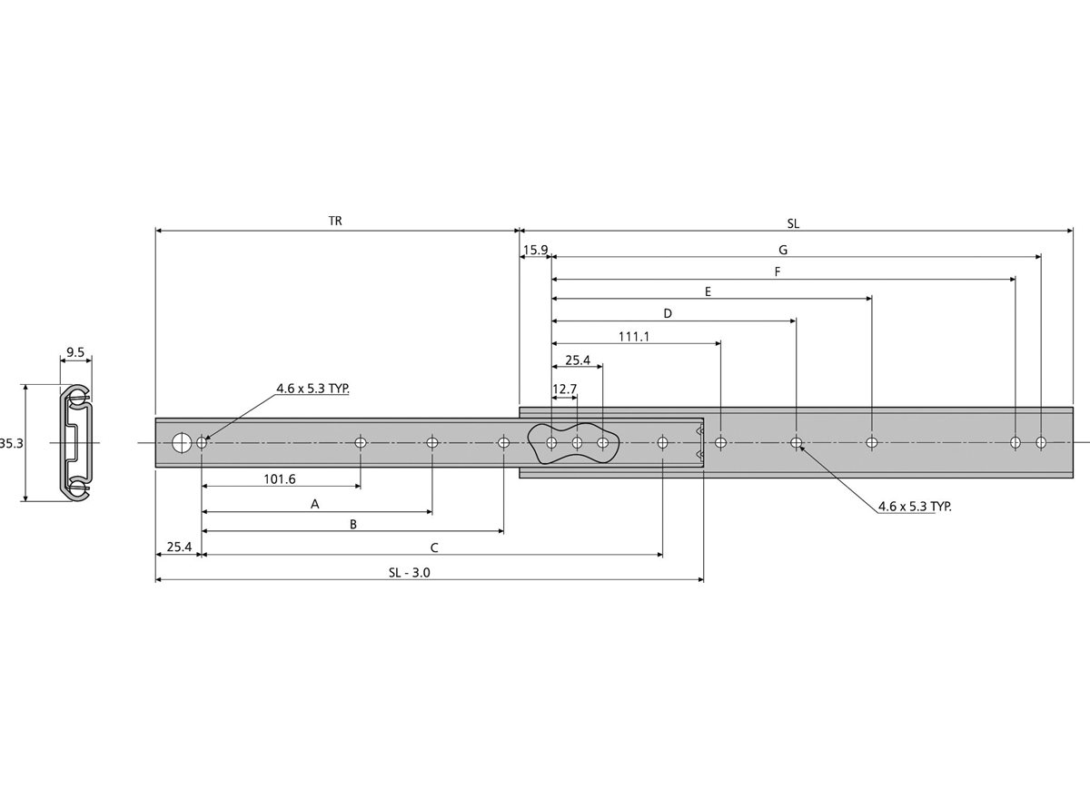 TR = Führungsschienenlänge