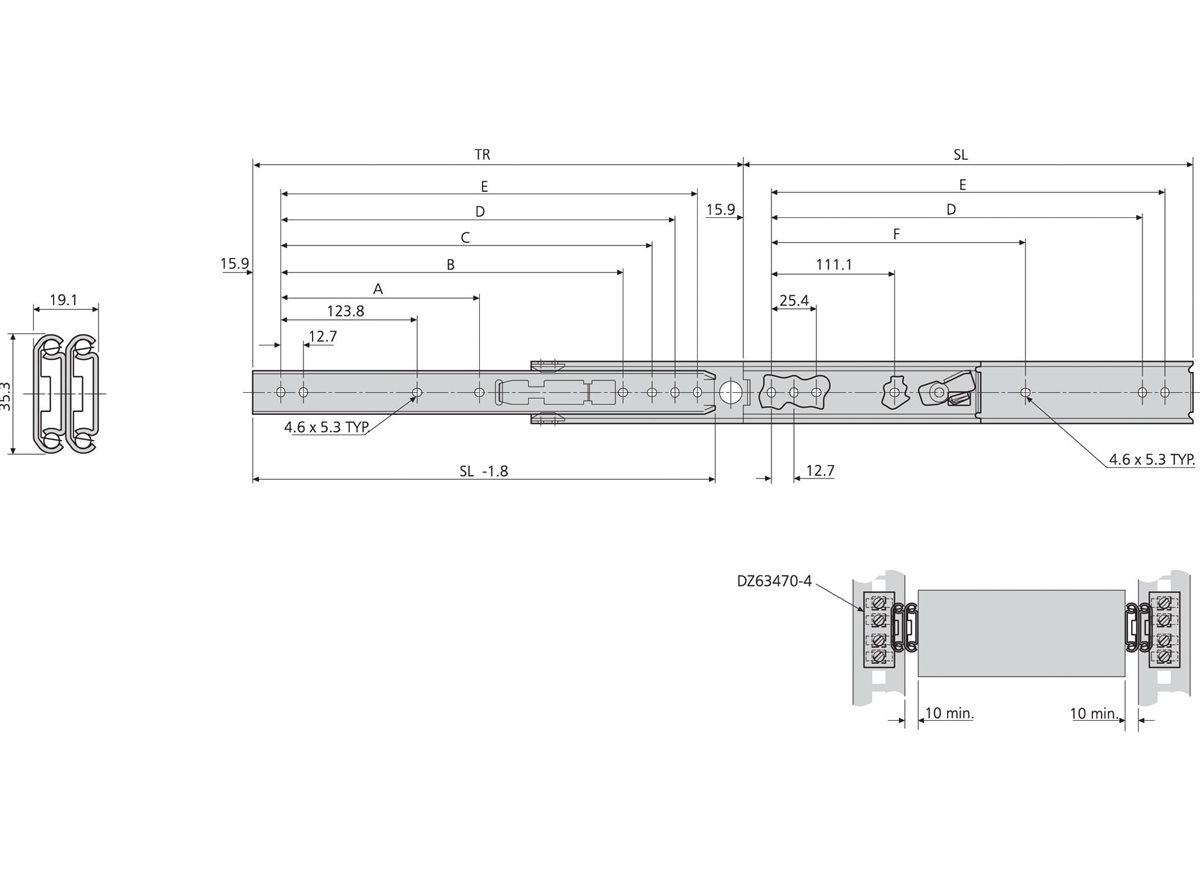- Horizontally (flat) mounting slides reduces the load capacity to at least 75% of the vertical (side) mount capacity