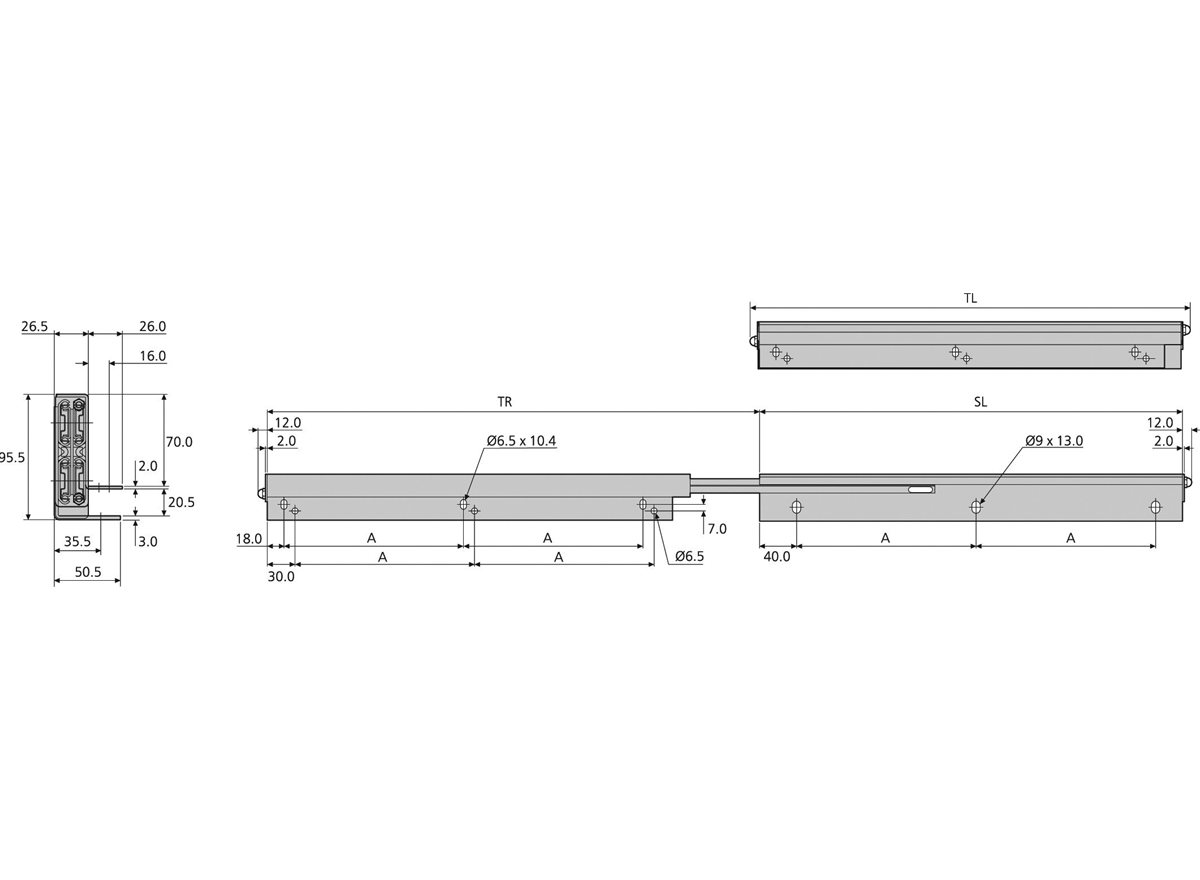 TR = Führungsschienenlänge