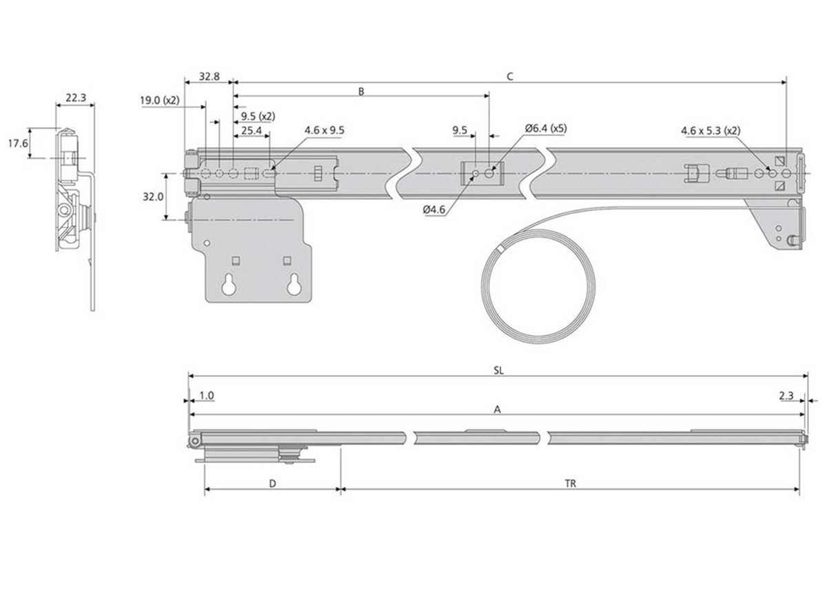 Die Accuride 1432 Schiene für eingebaute oder aufliegende Einschubtüren lässt sich ausschließlich vertikal montieren und eignet sich gerade für hohe Türen. Wir bieten ebenfalls hochwertige Salice-Scharniere an, um die Montage am Schrank ideal zu unterstützen.