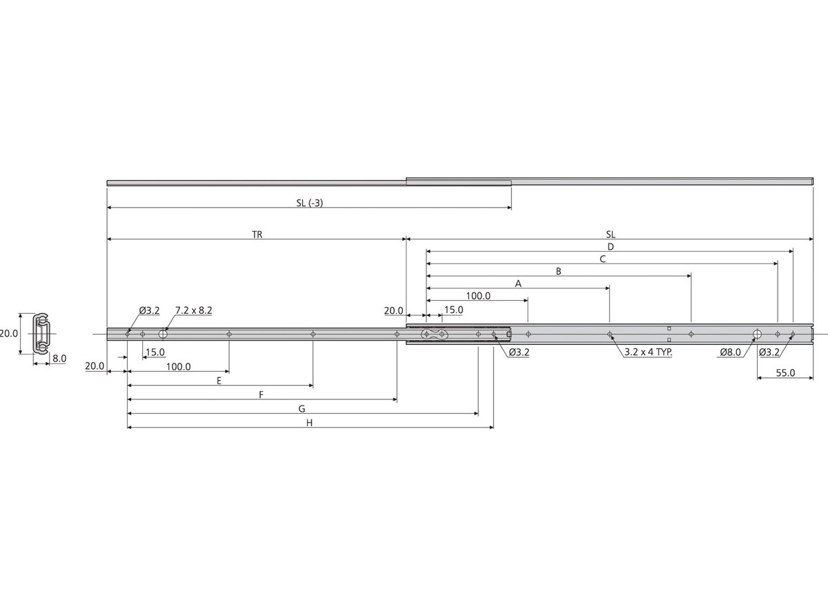 - Load ratings quoted are the maximum for a pair of side mounted slides installed 450mm apart, unless otherwise stated