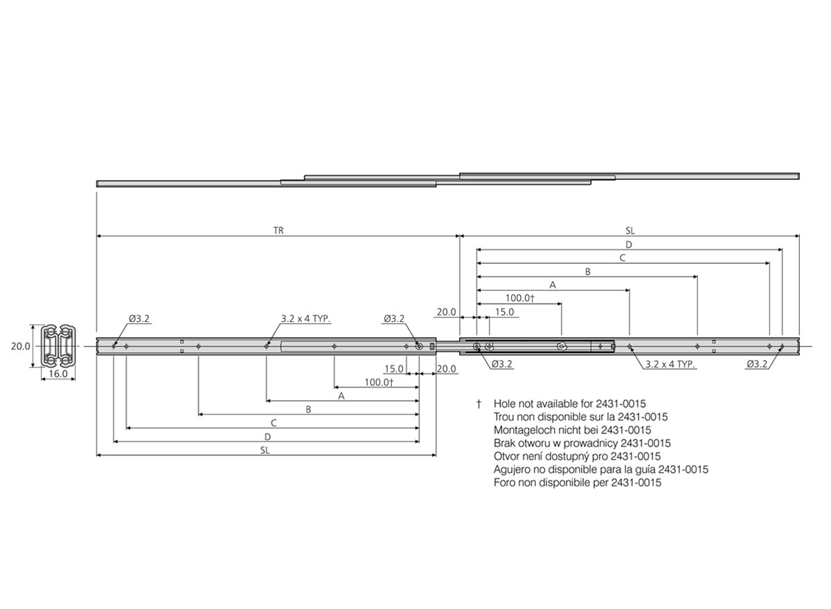 Accuride 2431 Schubladenschienen mit Vollauszug sind mit einer geringen Schienenhöhe designet und tragen bis zu 20kg.