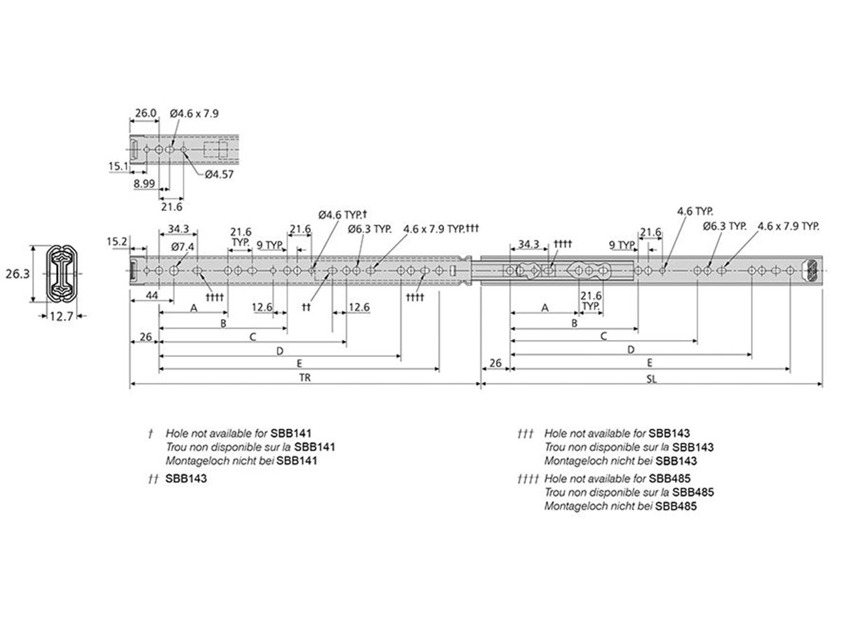 - Hole not available for SBB141, SBB143, SBB485 - see technical drawing for details