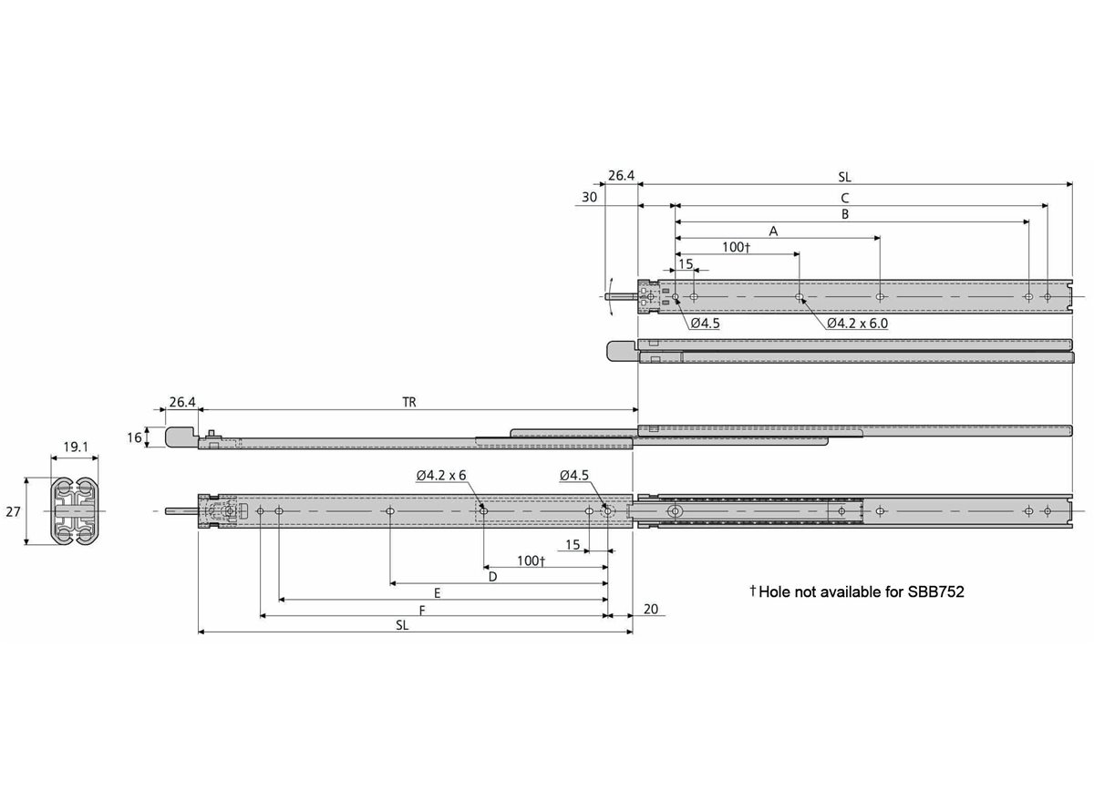 Please see technical drawing for hole exceptions for SBB752