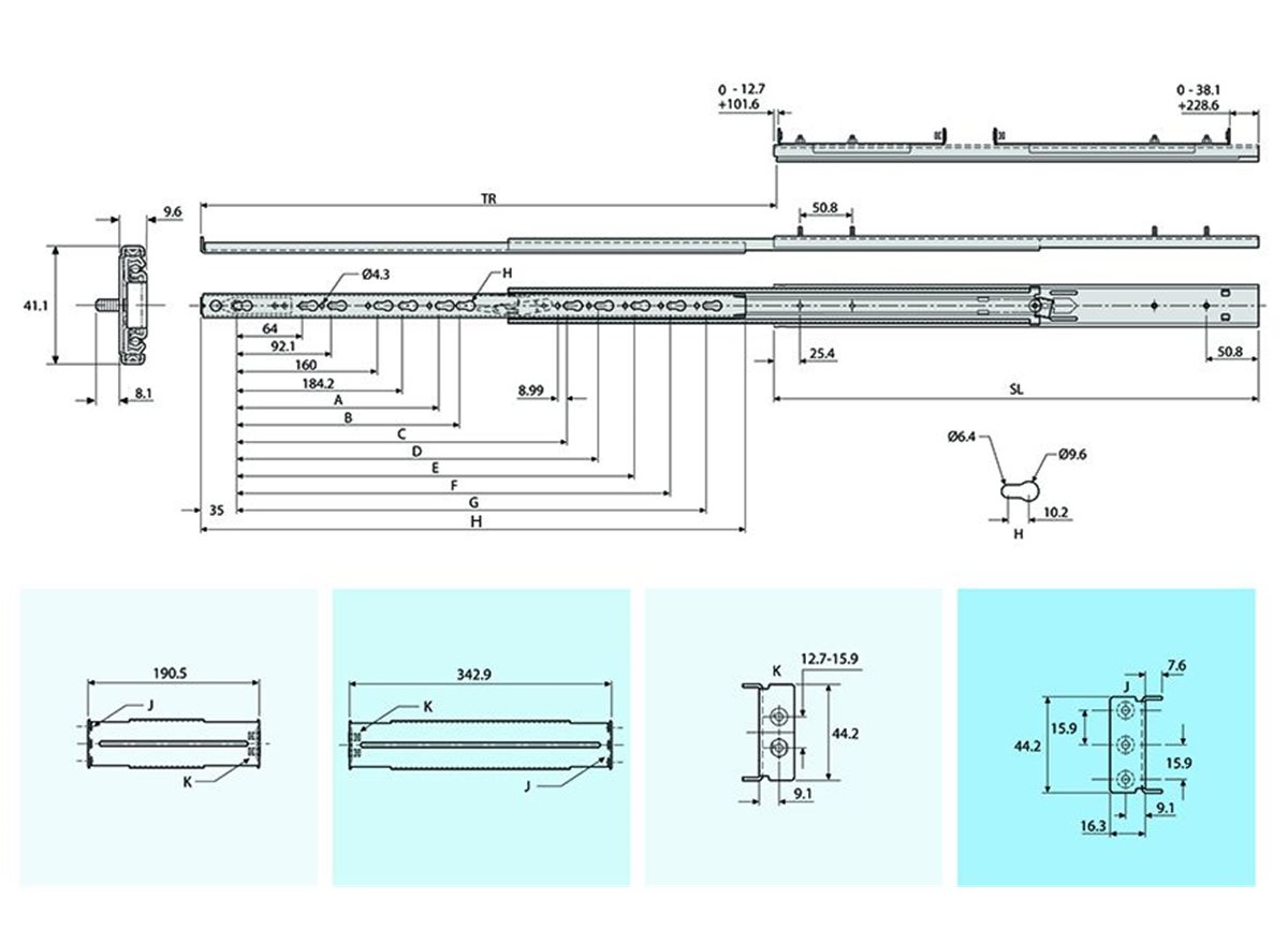 - Load ratings quoted are the maximum for a pair of side mounted slides installed 450mm apart, unless otherwise stated