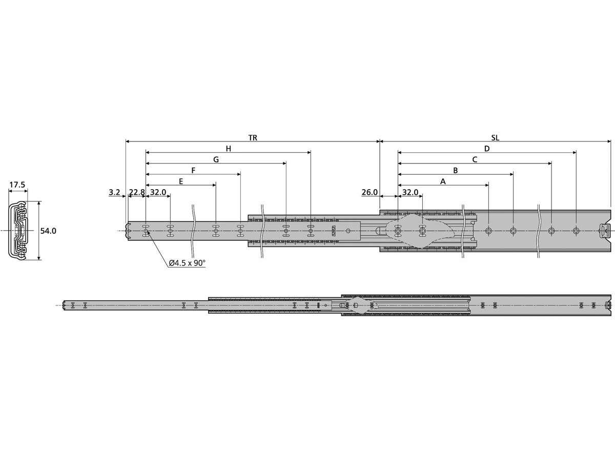 TR = Führungsschienenlänge