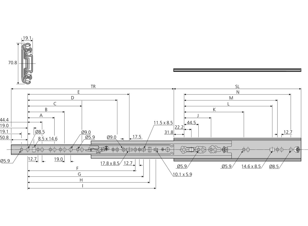 SL = Slide Length (mm)