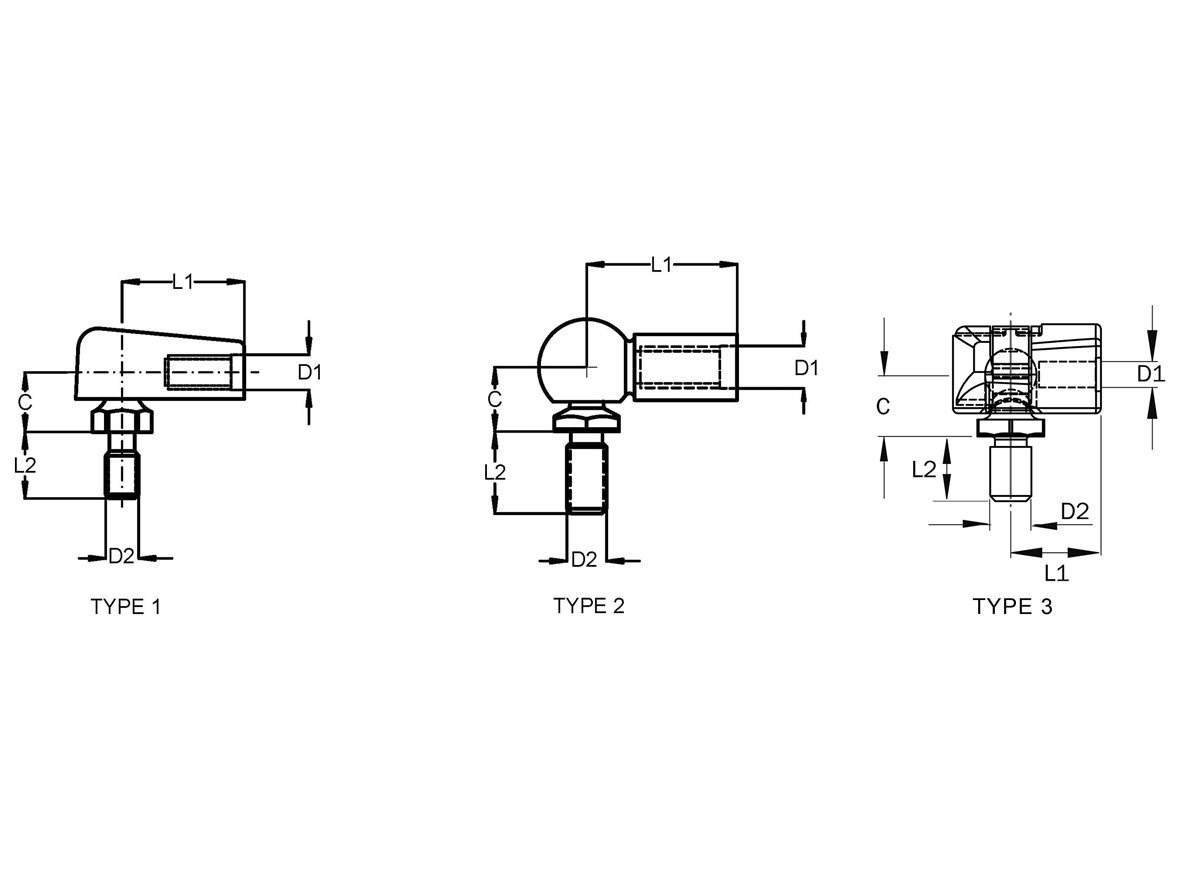 Products without C, D2, L2 dimensions are 10mm ball sockets only with no threaded pin. They are suitable for use with our 90 degree Ball Pin and Raised Brackets.
