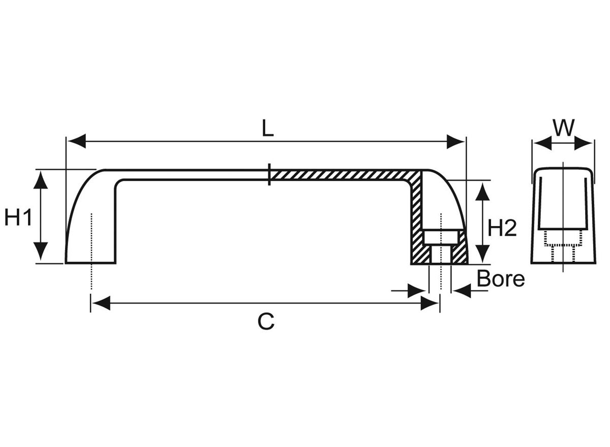 These Bridge Handles feature plain through bores for fixing with bolts from the front.