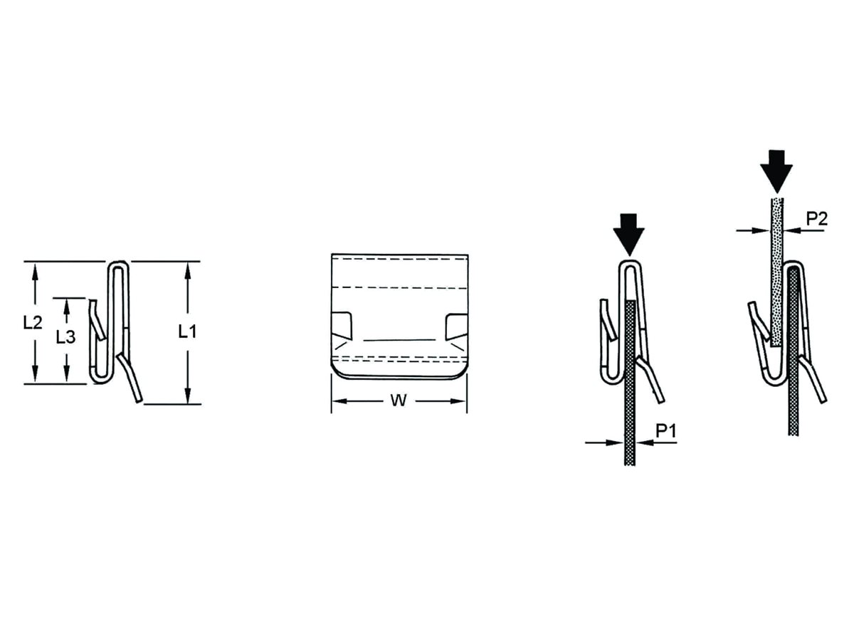 These S Clips represent a practical range of S shaped clips and are designed to hold metal, fibreboard or rigid plastic sheet material at 180° either to other metal panels or to each other. The barbs of the metal S Clip hold the clip securely in place, thus eliminating the need for holes and screws. These S Clips are part of a wider range of our Edge Clips.