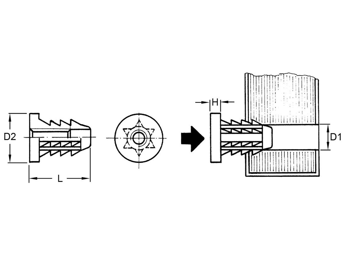 Diese Einsatzmuttern bilden ein festes und dauerhaftes Gewinde für Holz oder ähnliche Werkstoffe.