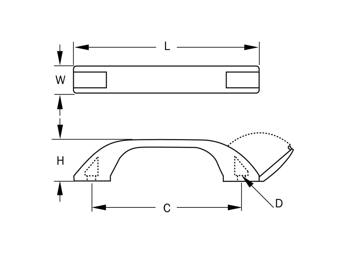 The Weston Body Hardware external-fix grab handles have integral snap-shut trim panels to conceal the fixing holes and are secured with bolts into slotted holes.