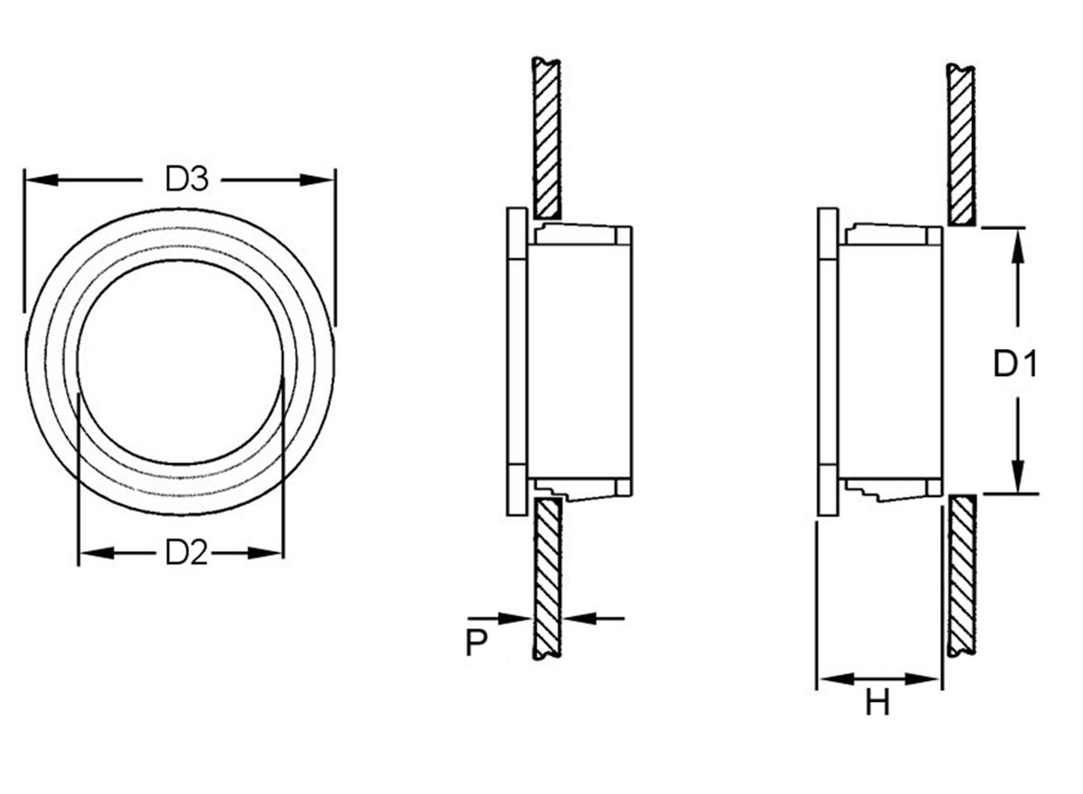 - Multiple sizes for use in mounting holes from 9.5mm to 63.5mm