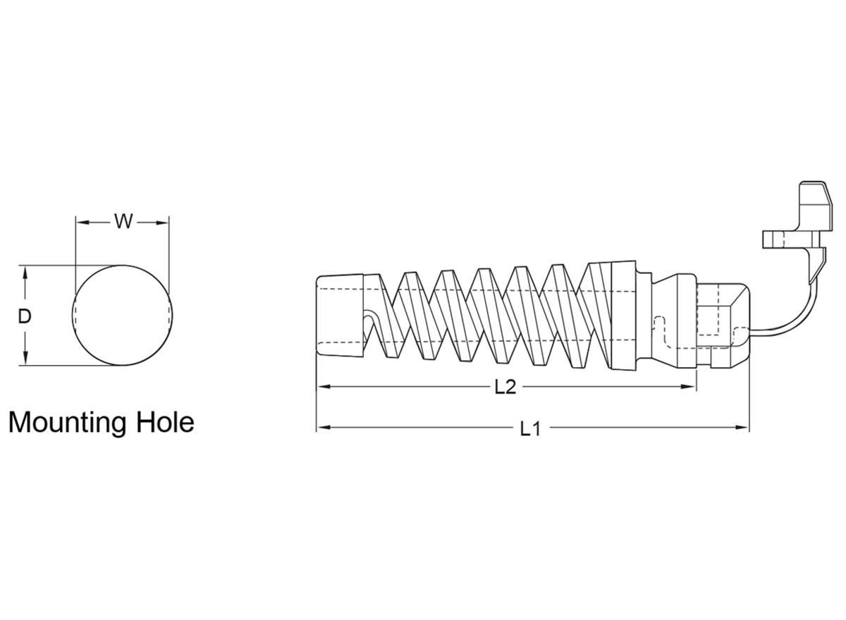 • Integral nylon spring eases the cable into a lazy bend; prevents sharp bending and assures longest cable and product life