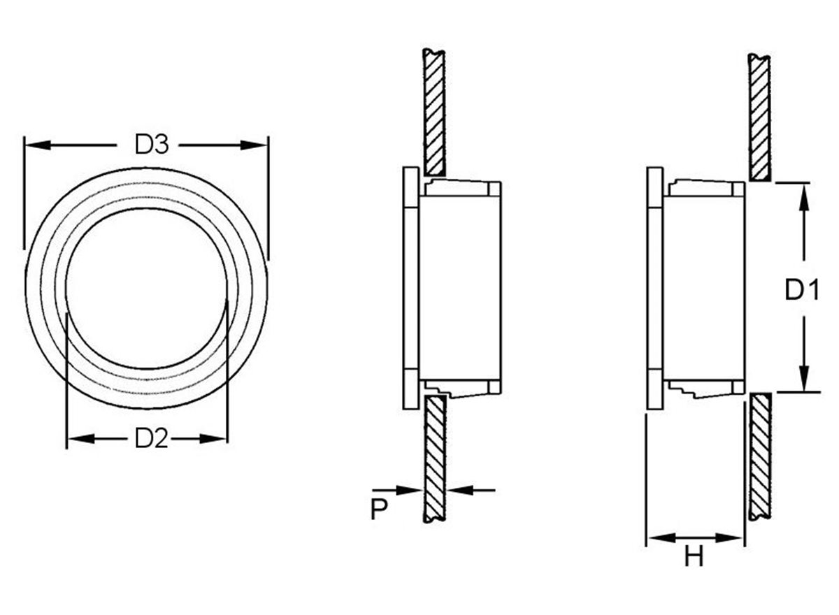 • Available in multiple sizes for use in mounting holes from 4.7mm to 25.4mm