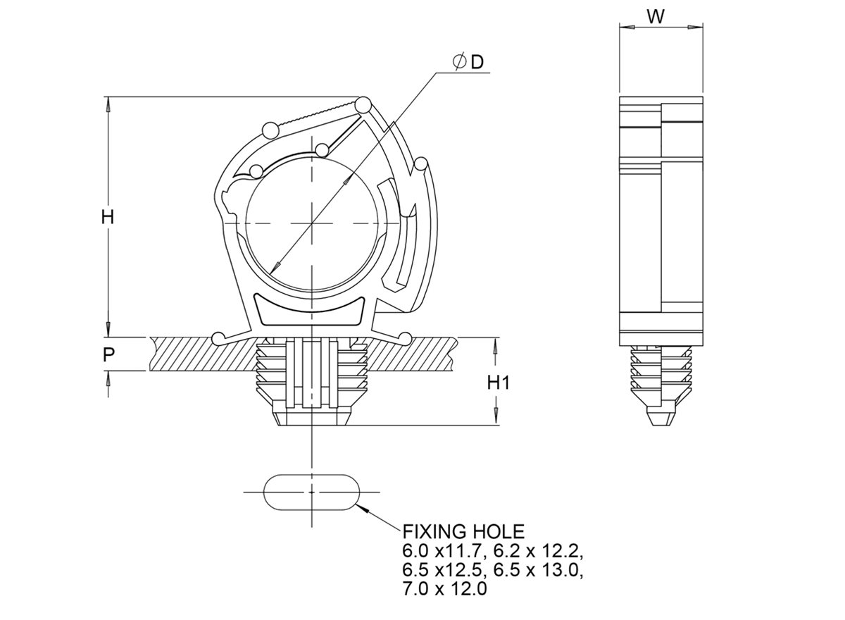 Diese Kabelmanagement-Clips verfügen über eine interne Rippe, um eine Bewegung des Clips entlang des Kabels zu verhindern. Zusätzlich sind sie mit einem verriegelbaren Oberteil mit Torsionsklemmfunktion für Anti-Vibration konzipiert.