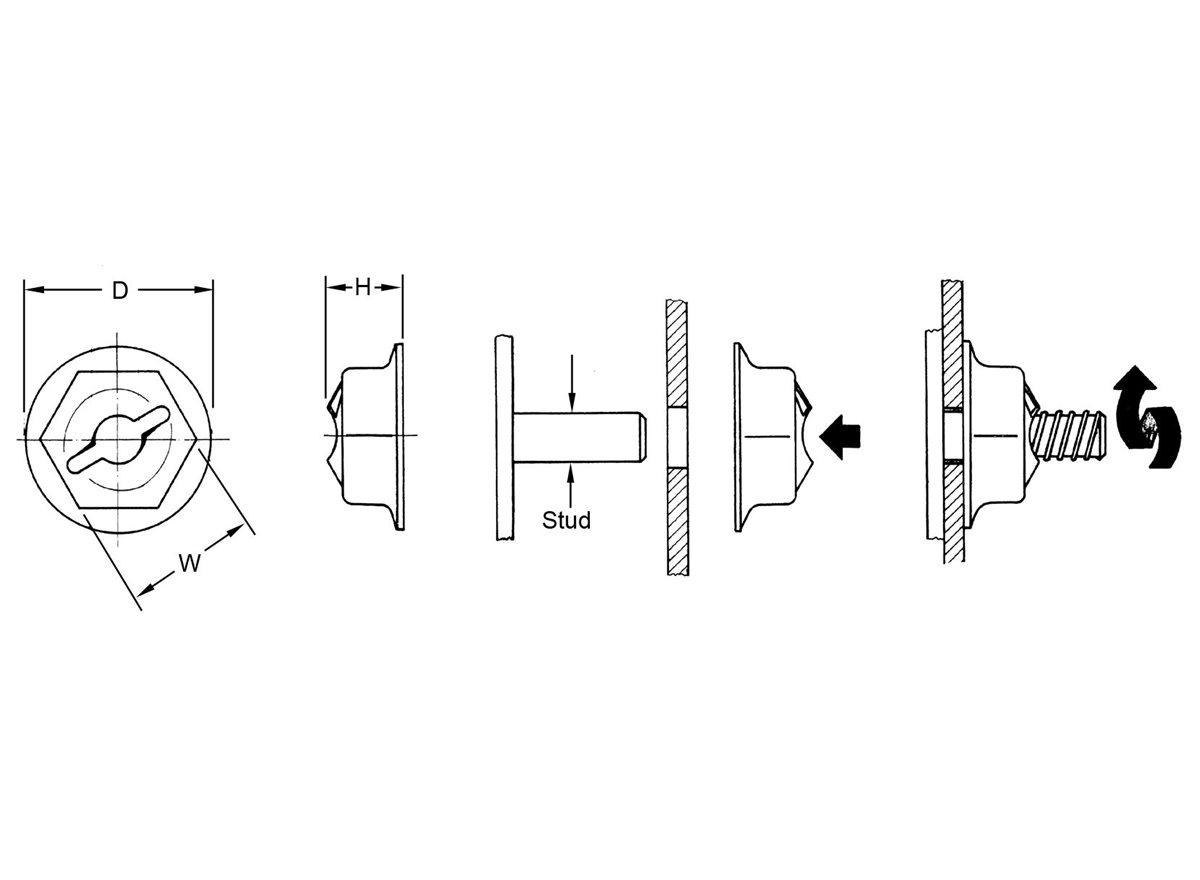 Diese Muttern formen ihr eigenes Gewinde auf Bolzen aus Kunststoff, Druckguss oder Flussstahl, ohne dass Schleifabrieb entsteht. Sie können entfernt und wiederverwendet werden.