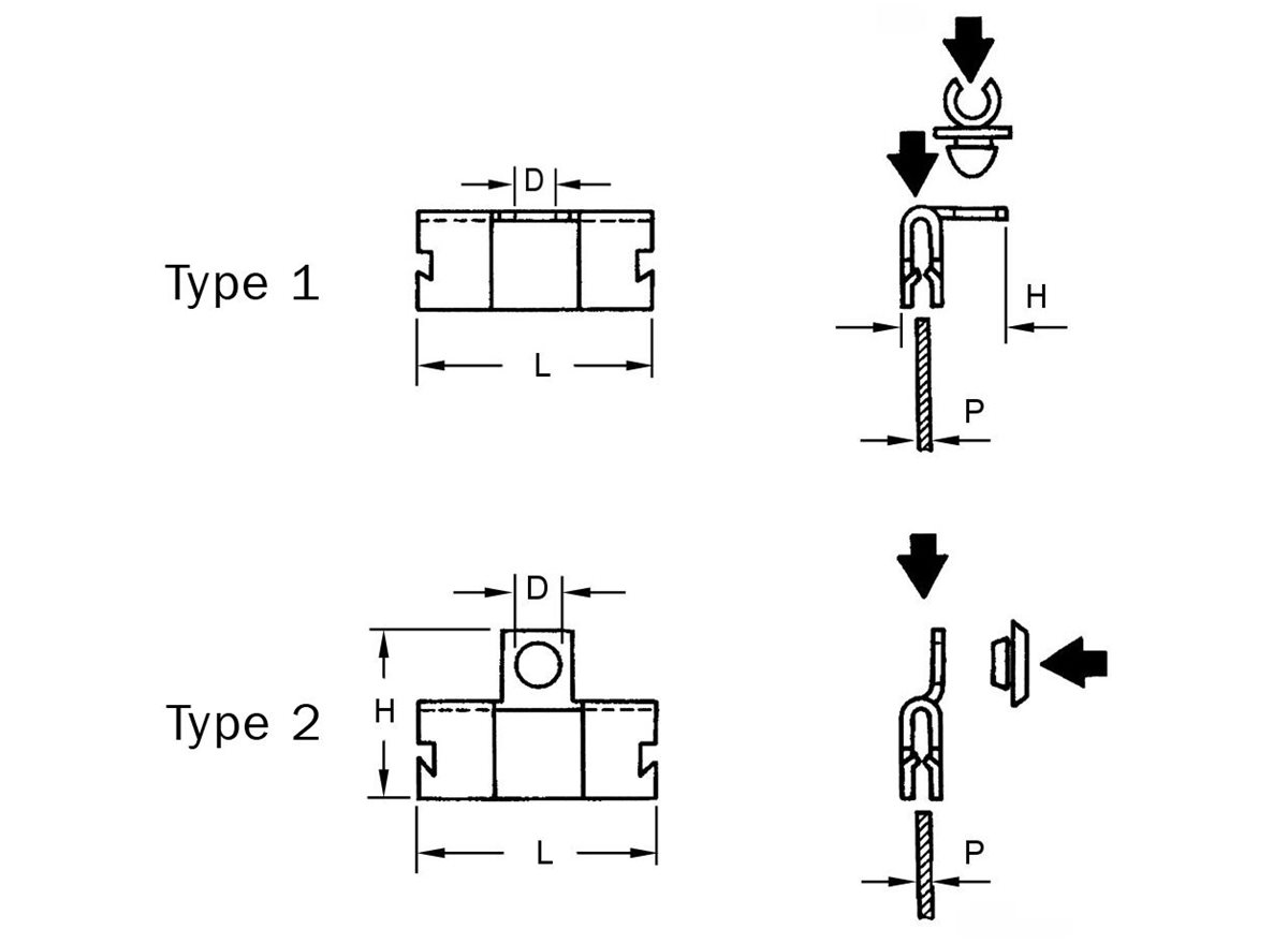 Diese Kabel- und Rohrschellenhalter können an einem beliebigen Metallflansch befestigt werden und eignen sich dort zum Festhalten einer Tannenbaum oder W-Knopf Kabel- und Rohrklemme.
