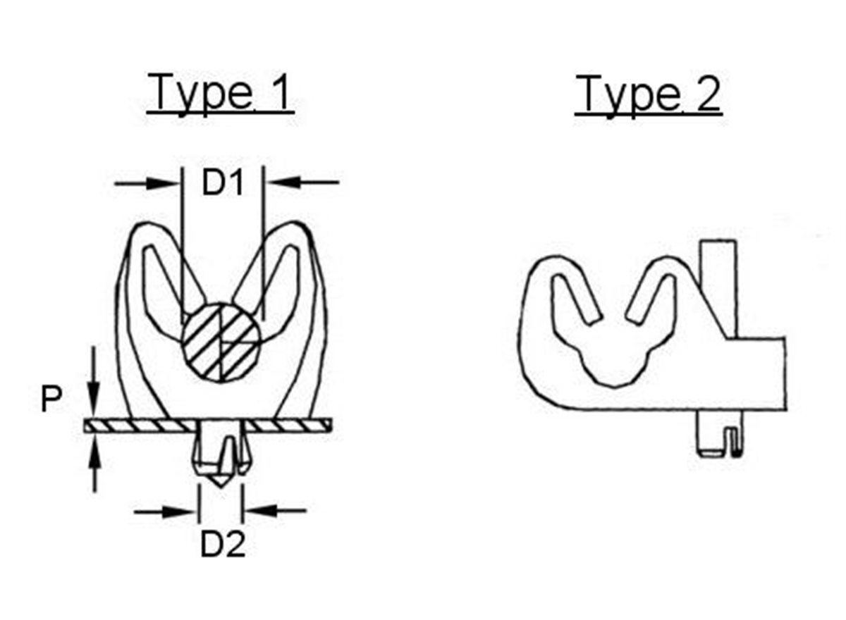 Diese Einfach-Schellen für Kabel oder Rohre eignen sich hervorragend für Blindmontagen, die Spreiznietenbefestigung braucht nur in das Loch eingedrückt werden und ist fest verankert. Wir haben zwei verschiedene Typen im Sortiment: Typ 1 hat eine zentrale Spreizniete und Typ 2 eine seitlich versetzte Spreizniete. Typische Anwendungen: Haushaltsgeräte, Kraftfahrzeuge, Elektroanlagen, Klimaanlagen Werkstoffe - Nylon, Acetal Standardfarben - Schwarz, Natur