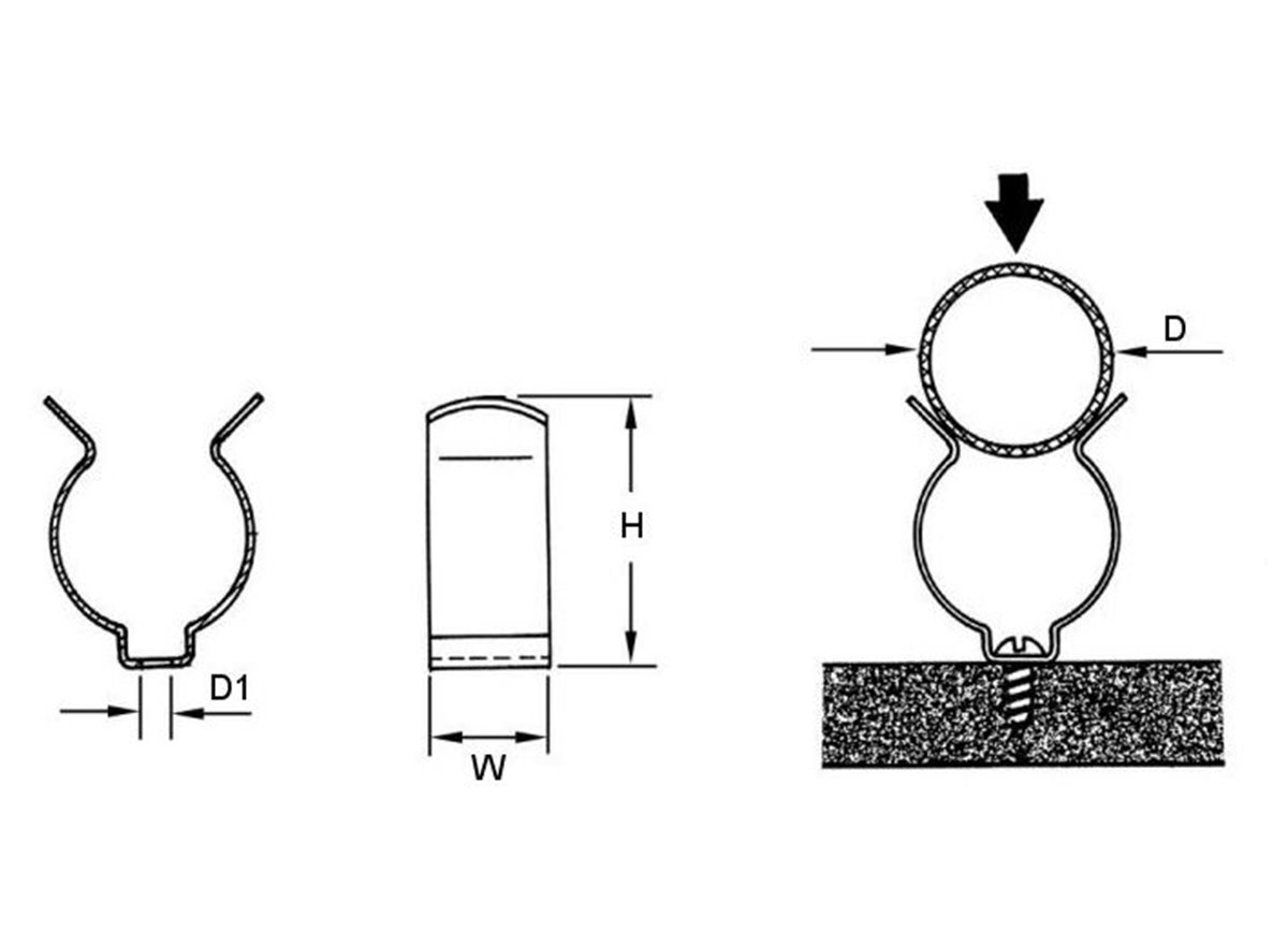 Klemmschellen, oder auch Federklemmen genannt, können sich um 360º drehen, so dass die Rohre oder Kabel ohne Scheuern ihre gewünschte Lage einnehmen können. Das Produkt verfügt über ein mittig sitzendes Befestigungsloch und kann somit mit Nieten oder Schrauben befestigt werden.