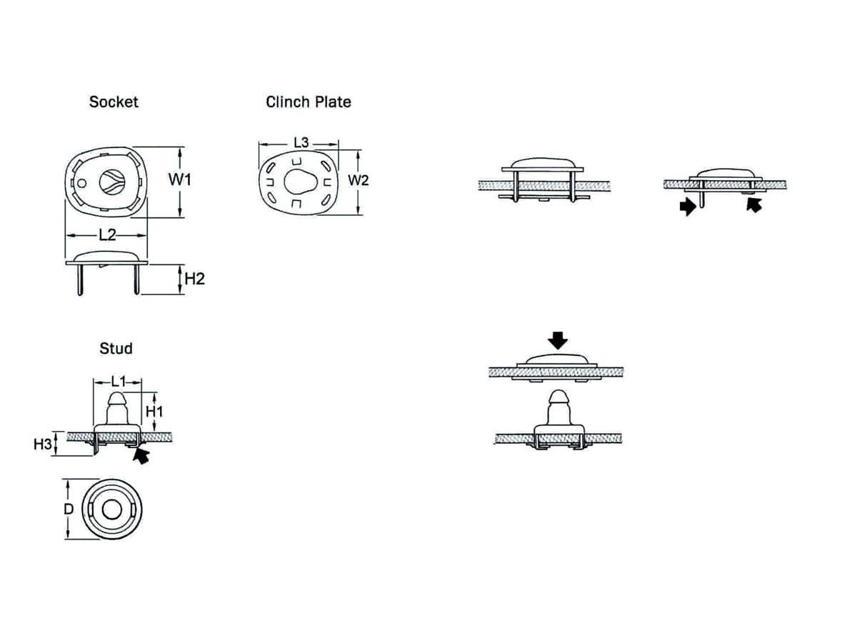 Dieser Lift-the-DOT® Hochleistungs-Verschluss verfügt über einen Ansatz mit zwei Zacken. Diese greifen in eine Klemmscheibe auf der anderen Seite des Untermaterials, wodurch der Ansatz einen festen Sitz erhält.