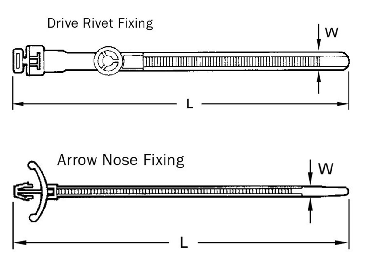 These Panel Fixing Ties are designed to be fixed into a pre-punched or drilled hole using either an integral arrow nose or drive rivet. Available as a standard or releasable cable tie - which remains locked until intentionally released by the finger catch - they are easily assembled by hand or by using our standard cable tie installation tools.