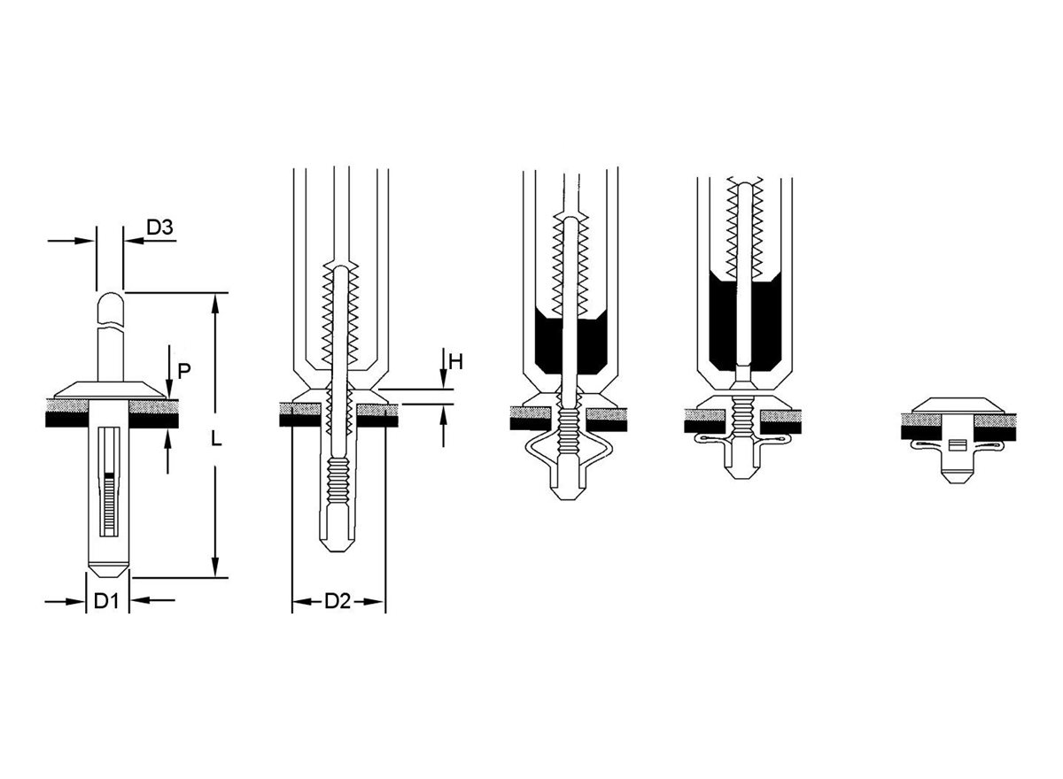 Pop Rivets / R-Loks can be easily applied using standard hand or powered rivet setting tools. Alternatively, for small to medium production runs, our Manual Insertion Tool INT002 can be used for all sizes, using a simple squeezing action to apply.