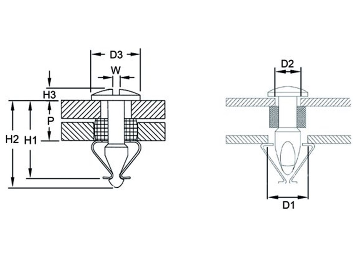 Dome Head Studs are part of the Bi-fix Quarter Turn Fasteners range. They are easy to apply, simply insert them through the lid or top panel and press them into the clip on the bottom panel to close. Dome Head Studs are released with a quarter turn using either a coin or a flat blade screwdriver.