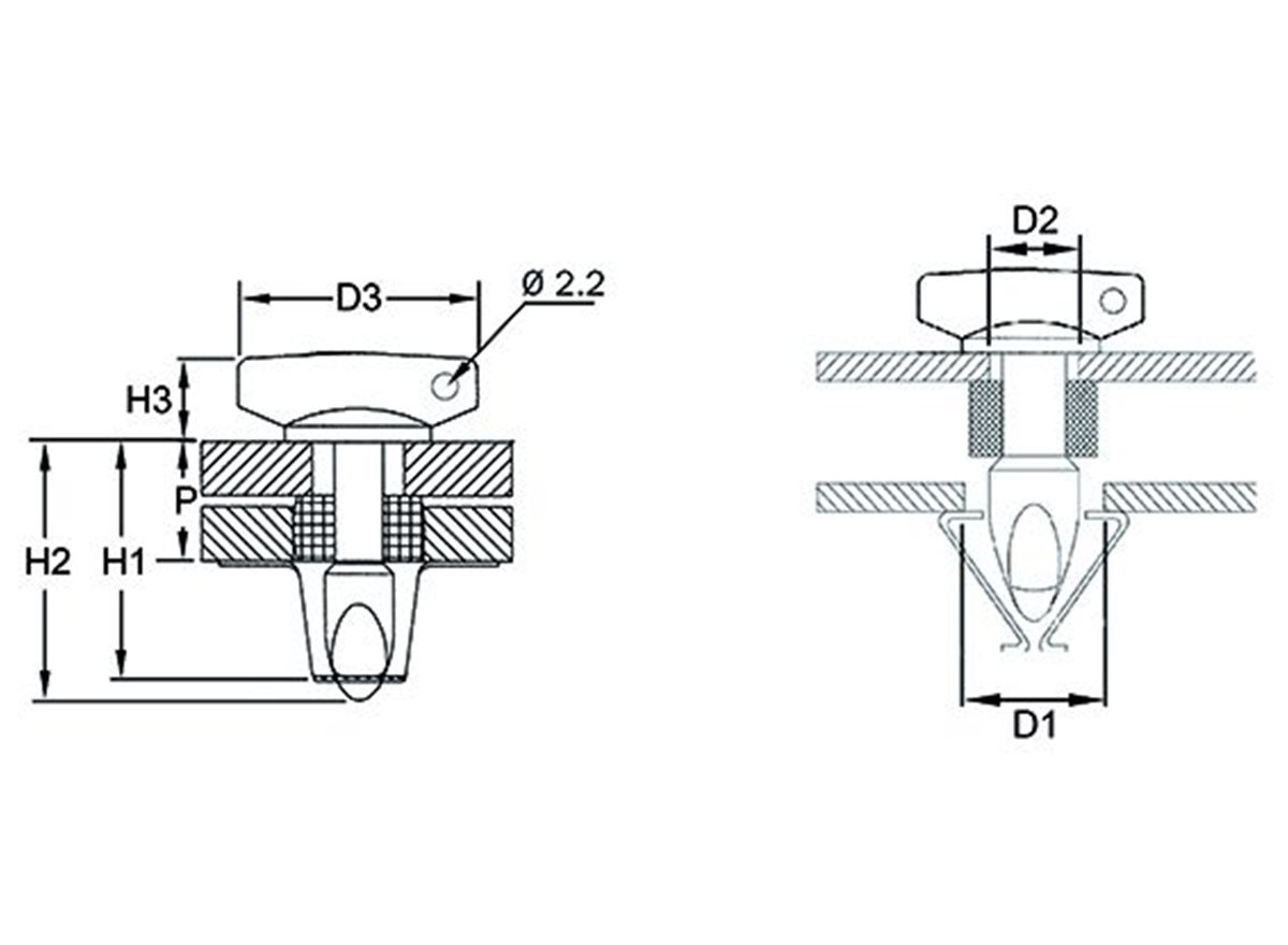 These Bi-fix Quarter Turn Fasteners Wing Head Studs are inserted through the lid or top panel and simply pressed into the clip on the bottom panel to close. The wing head makes them easy to release by hand with a simple quarter turn of the stud.