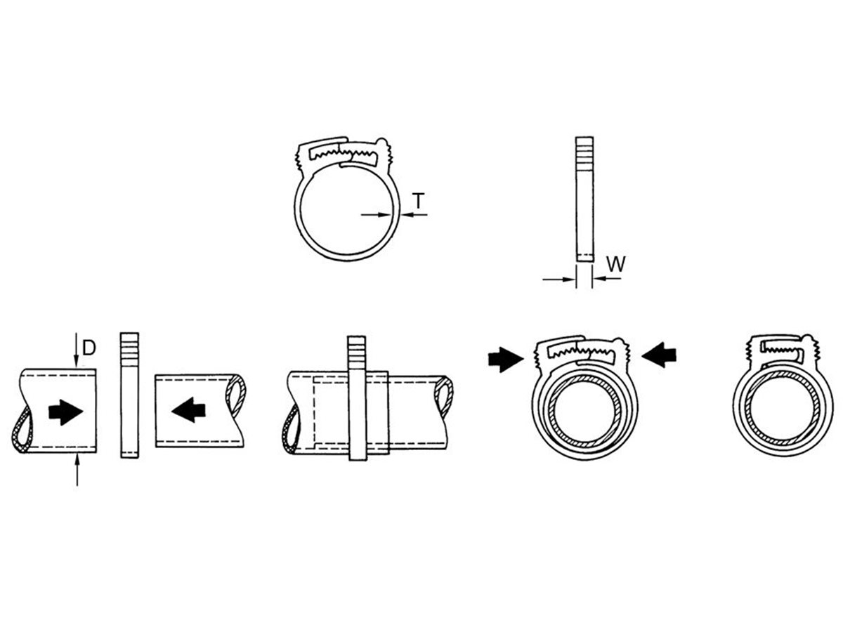 Aus hitze- und UV-beständigem Nylon hergestellt, sind diese einteiligen Schlauchklemmen gegen Korrosion und die meisten Chemikalien (einschl. Benzin, Öle und Fette) resistent. Diese Klemmen wurden für Anwendungen bis 14 bar und für Temperaturen von -40°C bis +150°C als schnelle und kostengünstige Lösung konzipiert. Die Klemme wird um den Schlauch gelegt und an den Außenseiten zusammengedrückt. Muss die Klemme gelöst werden, verdreht man die Seiten, damit die Zähne freikommen. Die Klemme ist wiederverwendbar. Ein umfangreiches Sortiment von Montagewerkzeugen ist ebenfalls erhältlich, setzen Sie sich gerne mit uns in Verbindung. Typische Anwendungen: Elektrogeräte, Kraftfahrzeuge, Haushaltsgeräte, Rasenmäher, Computer, Telefonsysteme Werkstoffe - Nylon 6.6 (Hitze- und UV-beständig) Standardfarbe - Schwarz