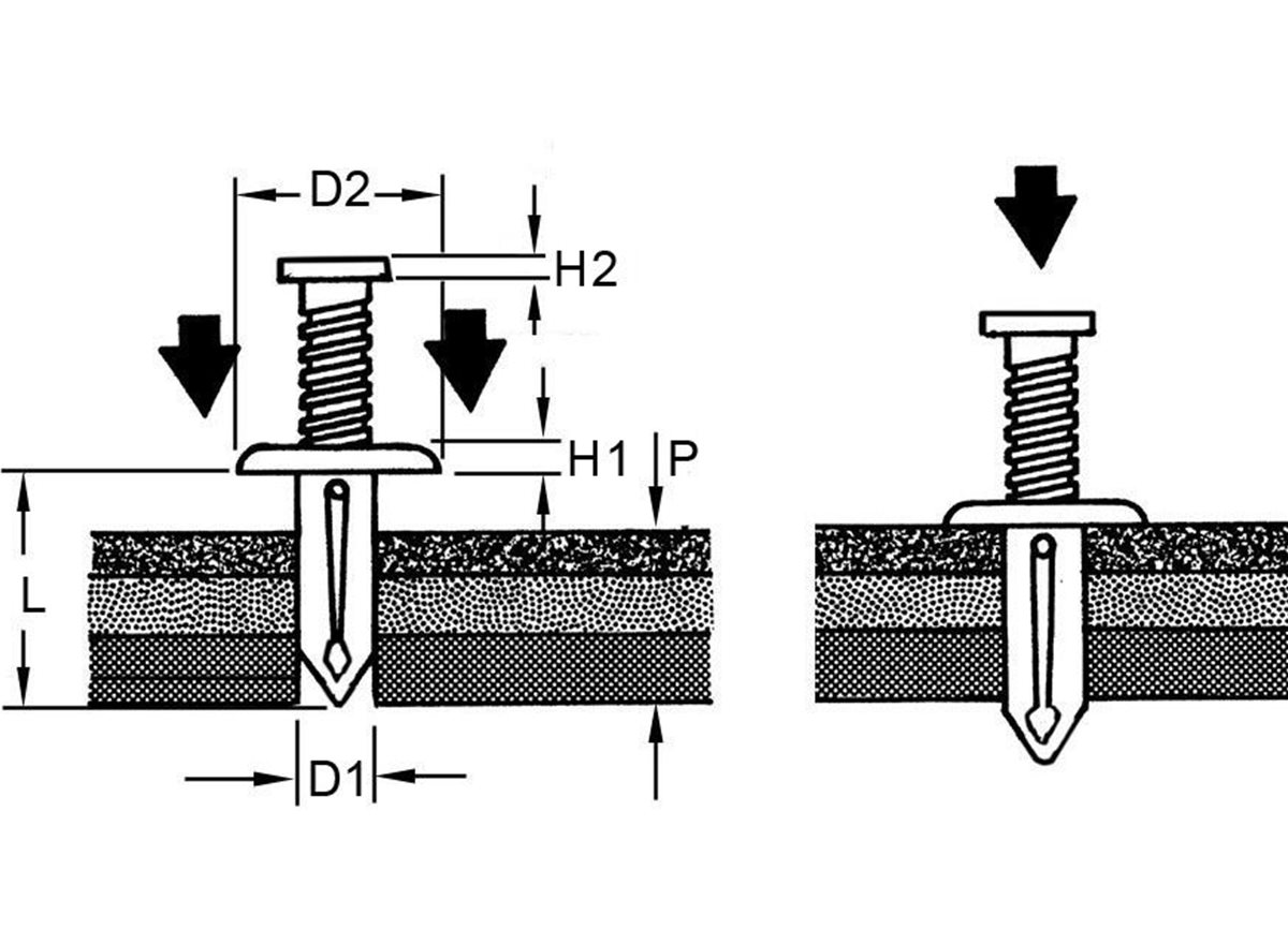 Fitting is easily and quickly achieved by driving the integral screw into the body. Removal is performed by unscrewing the the centre pin with a screwdriver.