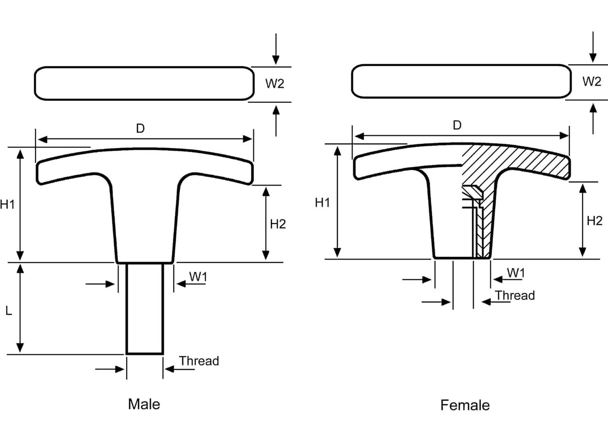 Available from stock in a standard matt black finish, these handles are available with male and female threads and are suitable for a wide range of applications.
