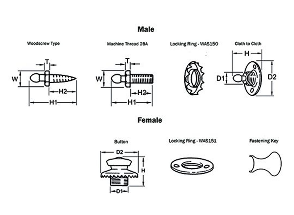 These heavy duty Tenax fasteners can be quickly fastened to and released from any type of material and are ideal for various marine applications, where resistance to corrosion is an important factor. This Male stud is used with the Female Button to form a complete fastening.