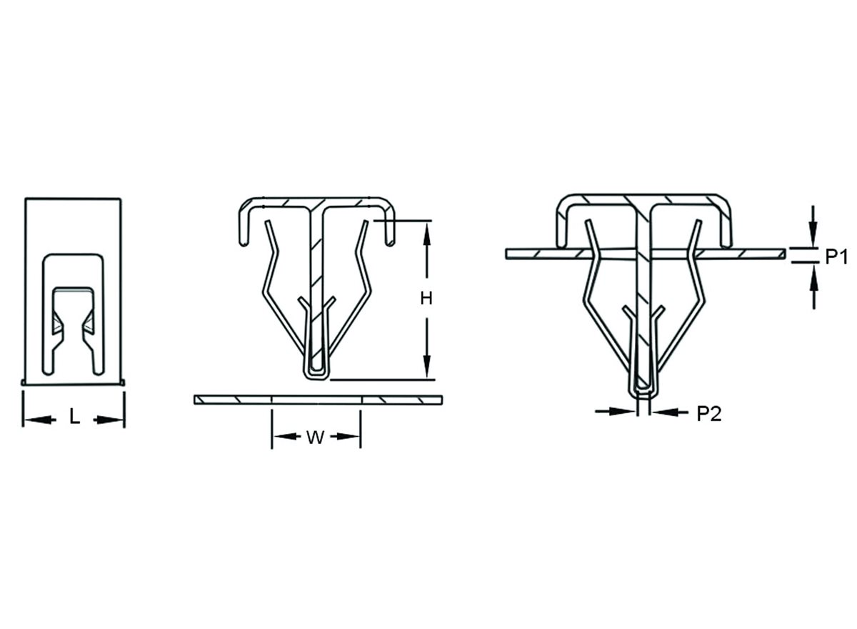 Designed for use on rectangular studs or integrally moulded ribs on any lightweight application where removability is desired, these panel trim fasteners provide a snug, rattle-free installation, yet will yield to deliberate removal force when required. Upon removal, the Unheaded Trim Panel Clips are retained on the trim panel by the integral steel barbs.