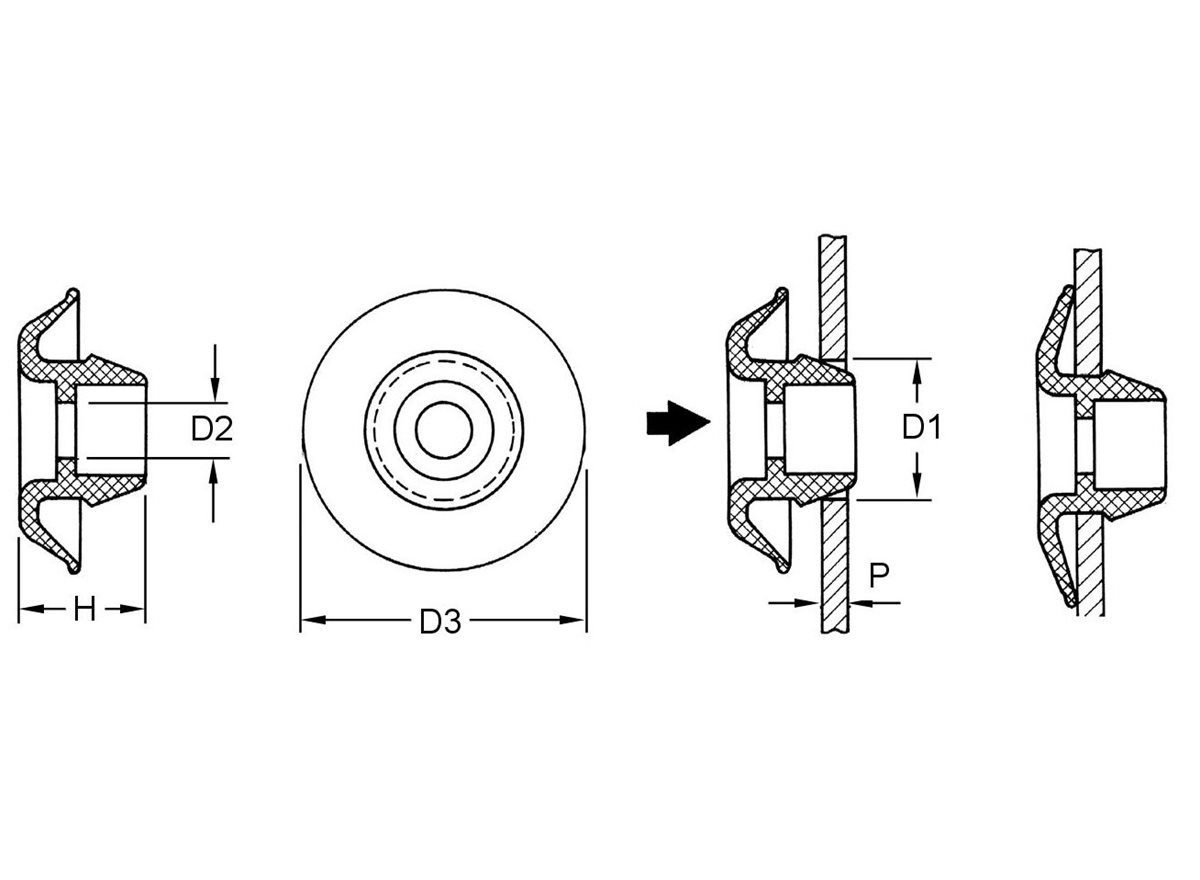 Diese selbstdichtenden Tüllen, die sich ideal für ölige und fettige Umgebungen eignen, schnappen ohne Spezialwerkzeuge in Rundlöcher ein. Im Bedarfsfall können sie entfernt und wieder eingesetzt werden.
