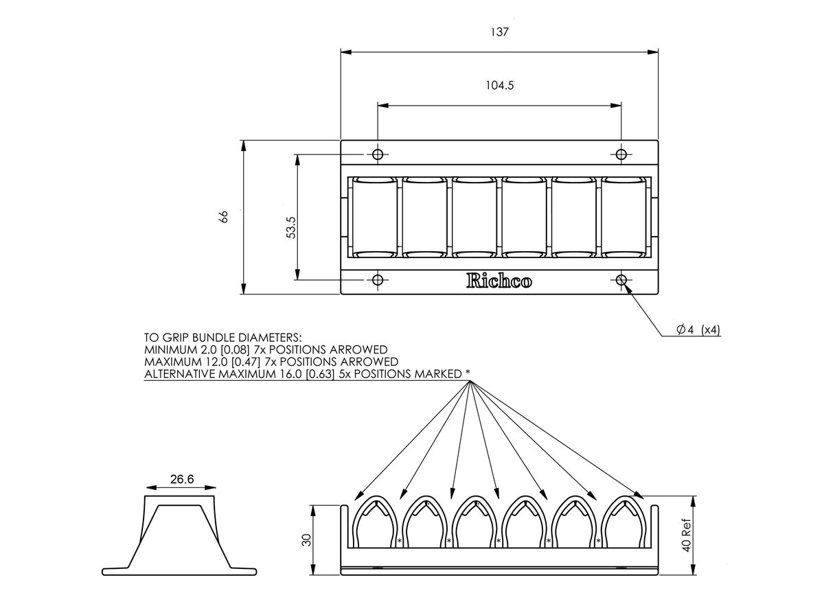 The Universal Cable Holder contains flexible channels that are easily removed to support cable bundles up to 2/3” in diameter. This 6-channel cable manager has a compact design that fits just about anywhere, including computer desks, home theater racks, and any other application with a flat mounting surface. These cable organisers can be used to manage data, power, and A/V cables, and are made of a soft polyethylene that will not damage cable jackets.