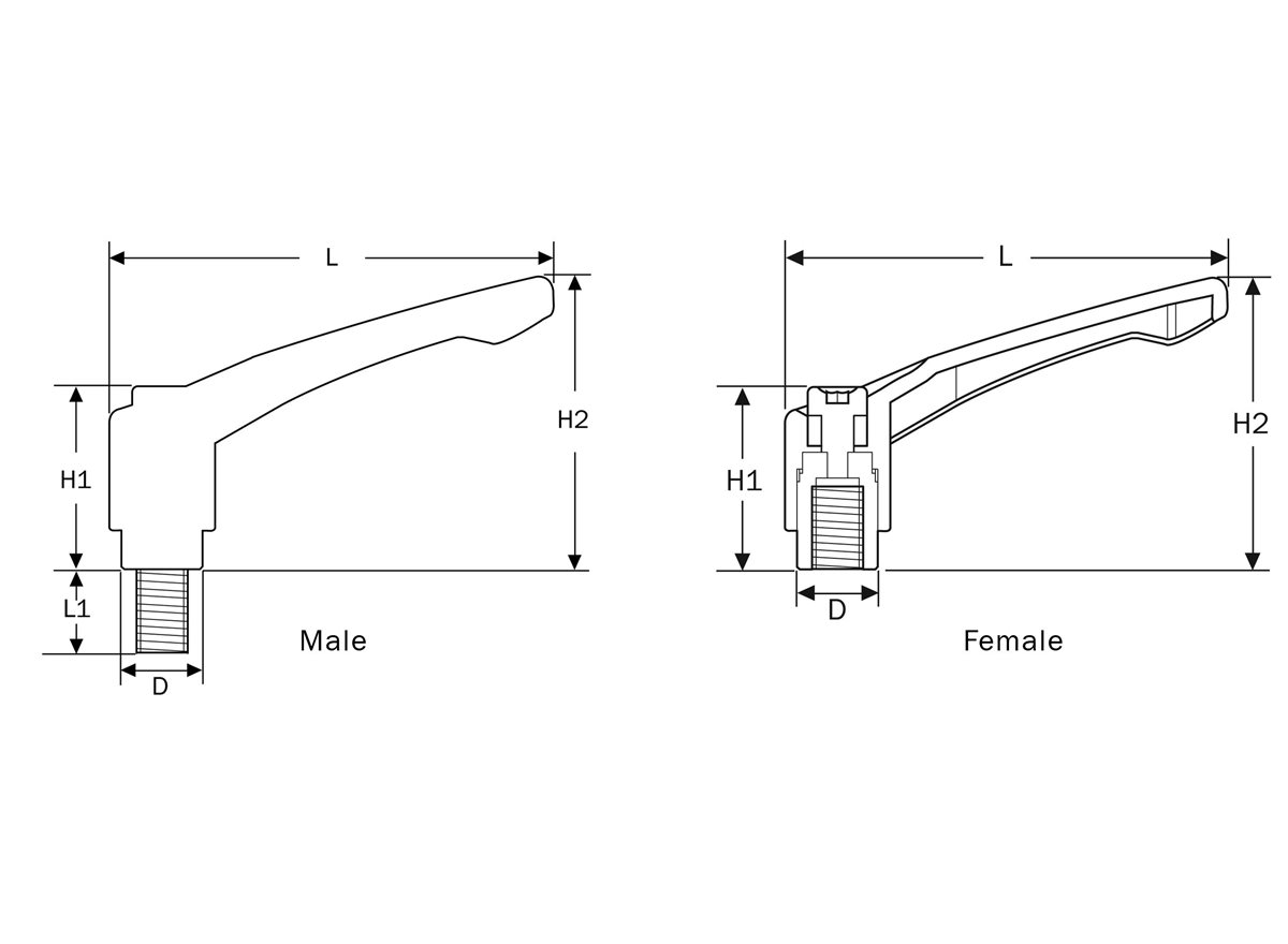 Diese Griffe sind mit verschiedenen Gewinden erhältlich: männlicher plattierter Stahlbolzen oder mit weiblichem Stahleinsatz. Diese robusten Klemmgriffe werden durch eine einfache Hebe- und Drehbewegung bedient und sind aus pulverbeschichtetem Zinkdruckguss in schwarzer Ausführung gefertigt. Einfach einzustellen, einfach die Kappe drücken und in der gewünschten Position parken.
