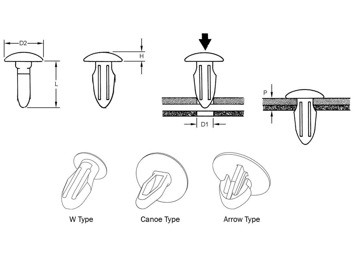 Diese W-Knöpfe - Verkleidungsclips dienen zur Befestigung von Abdeckungen und Verkleidungen.